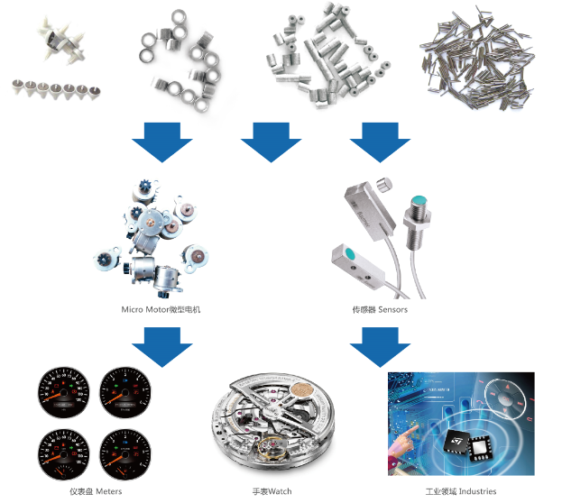 Widely applied to micro motor,optical communication,quartz watch,instrument and meter,sensor,
